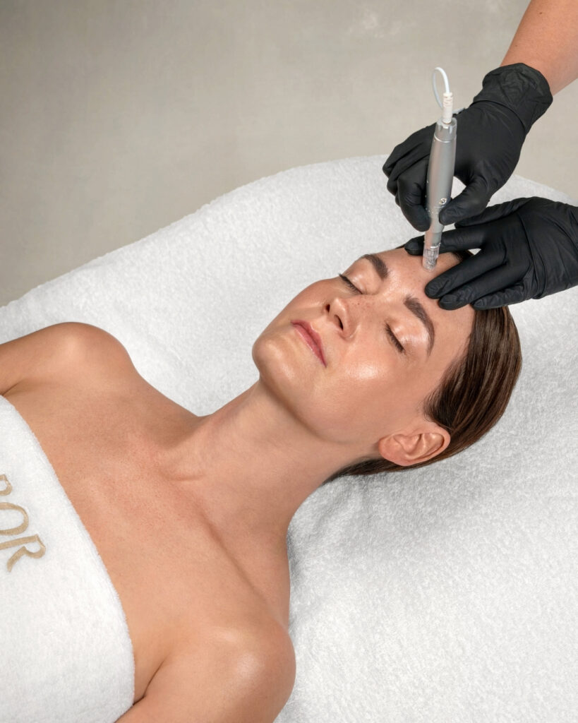 Das Needling-Gerät arbeitet gleichmäßig und präzise. Die Nadeltiefe wird individuell festgelegt – von Porenverfeinerung bis zur strukturellen Behandlung wie Narben oder Pigmentstörungen.