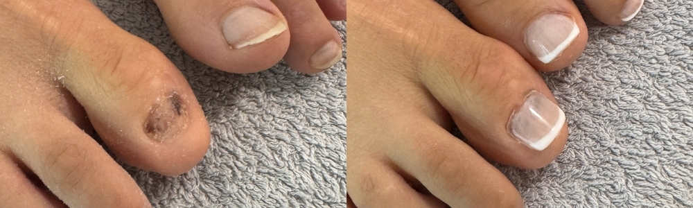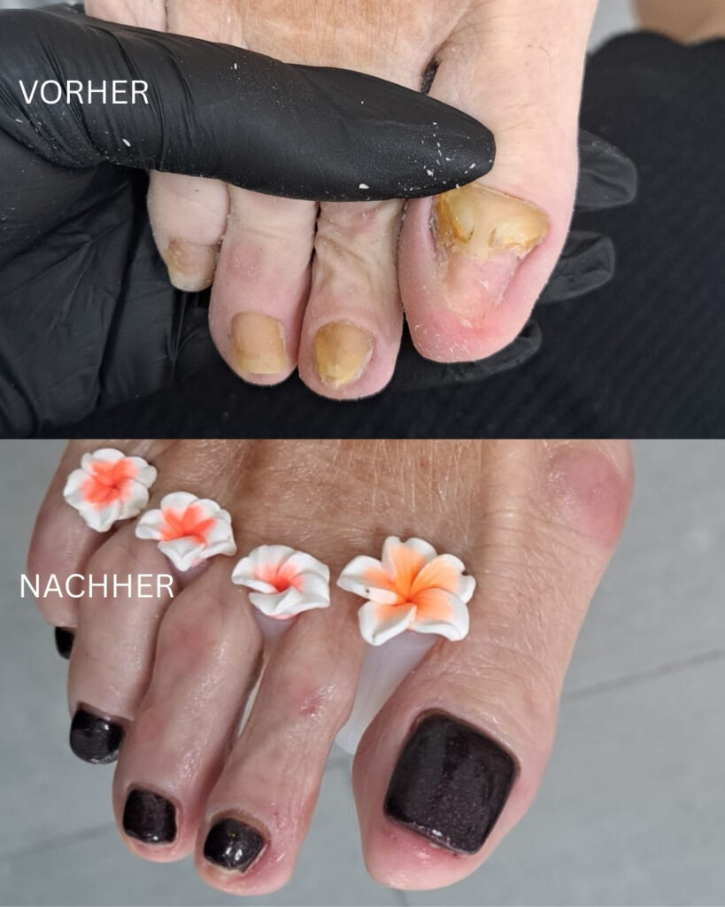 VViele Kundinnen wünschen sich eine Lösung für beschädigte oder unansehnliche Fußnägel, besonders wenn ein Nagel: